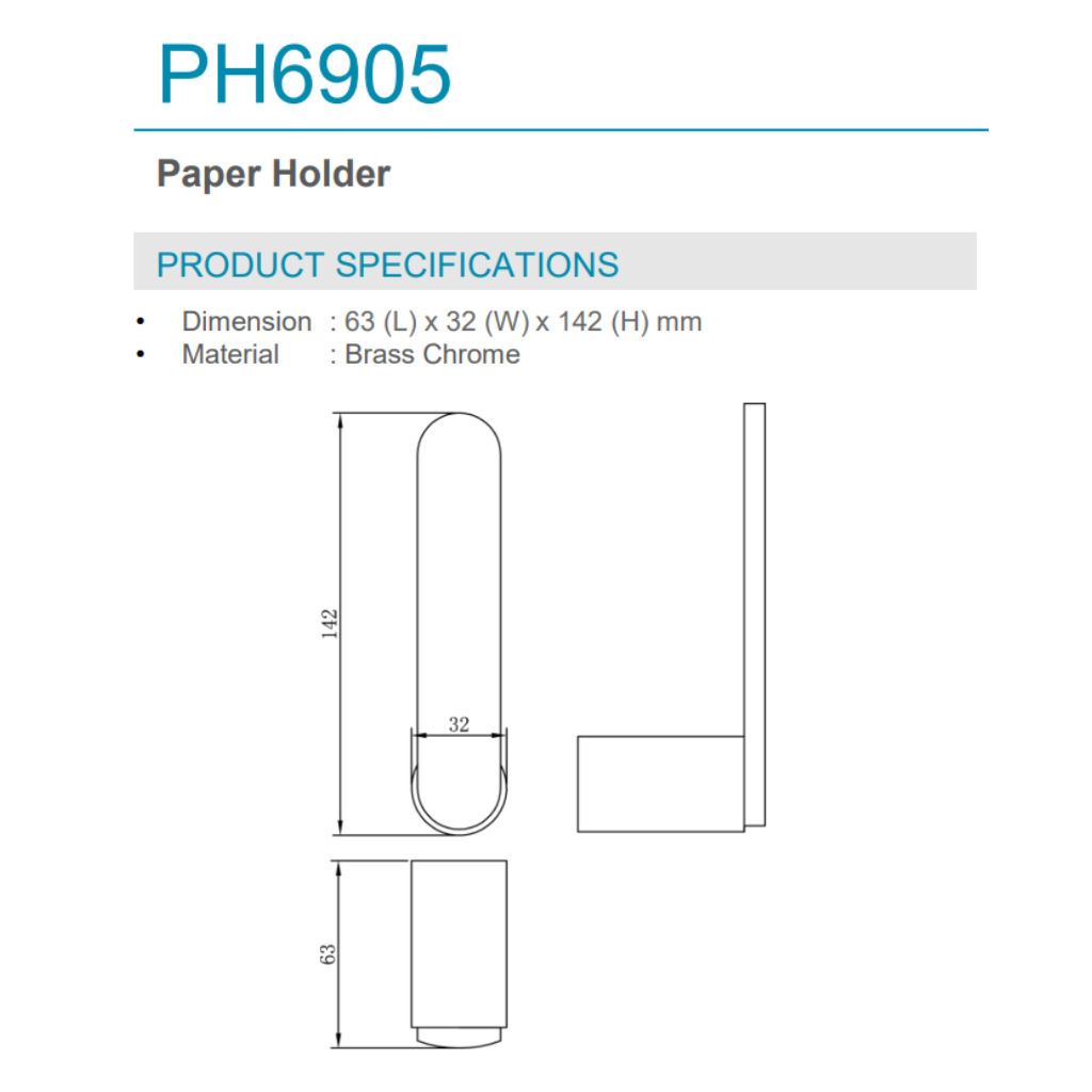 • Dimension : 63 (L) x 32 (W) x 142 (H) mm