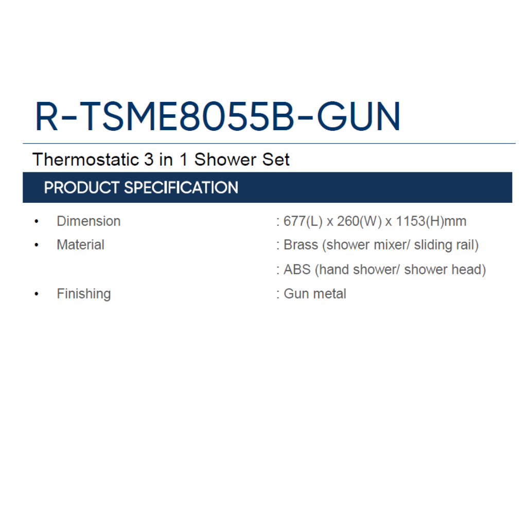 •Material : Brass (shower mixer/ sliding rail)