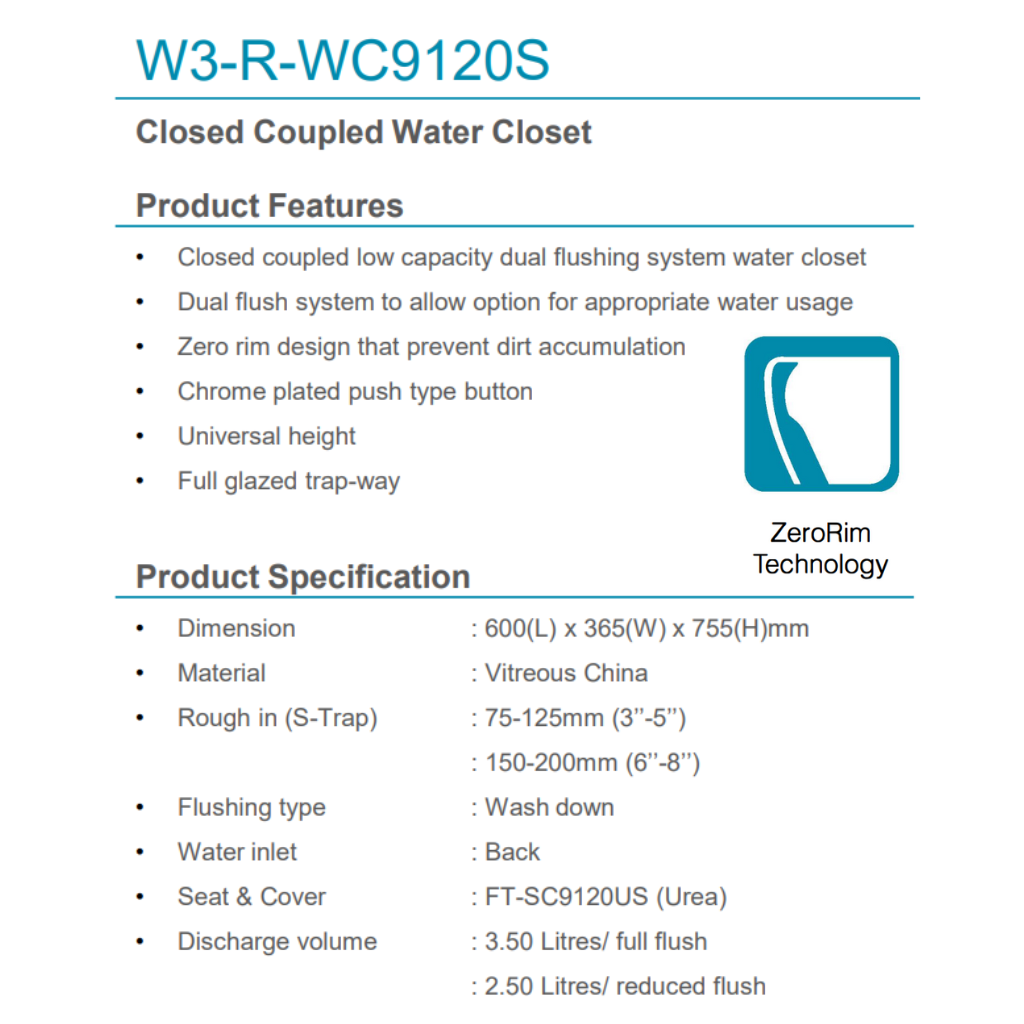 • Seat & Cover : FT-SC9120US (Urea)