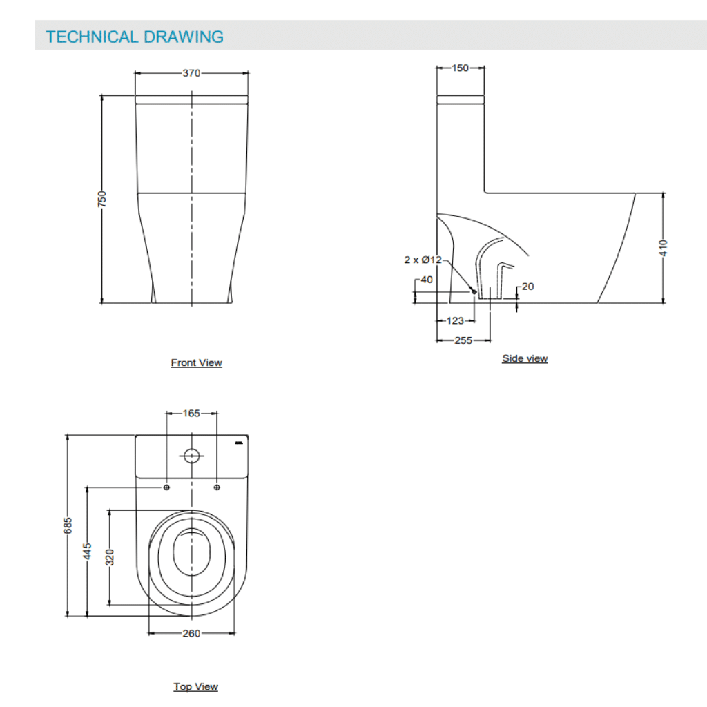 • Rough in (S-Trap) : 255mm (10’’)